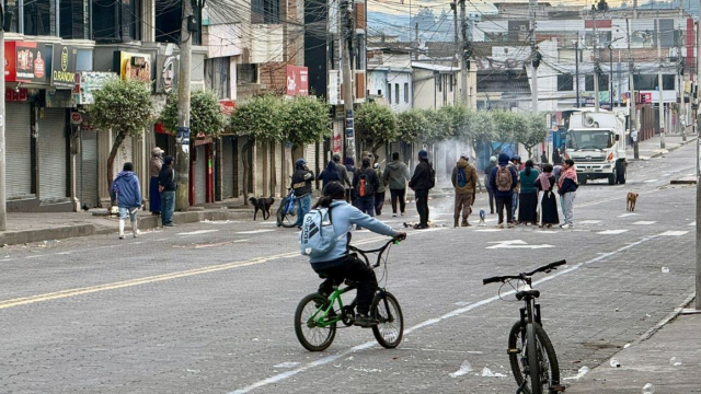 Desde tempranas horas de este jueves, comuneros indígenas han utilizado piedras para bloquear la circulación en el centro de la ciudad. Además, se reportan manifestantes en las calles quemando papel y cartón para mitigar el frío, cumpliendo con el anuncio realizado la tarde anterior de que no se permitiría la atención en locales comerciales ni la circulación de vehículos. Los bloqueos, que antes se concentraban en la Panamericana Norte, se han trasladado al interior de la urbe.