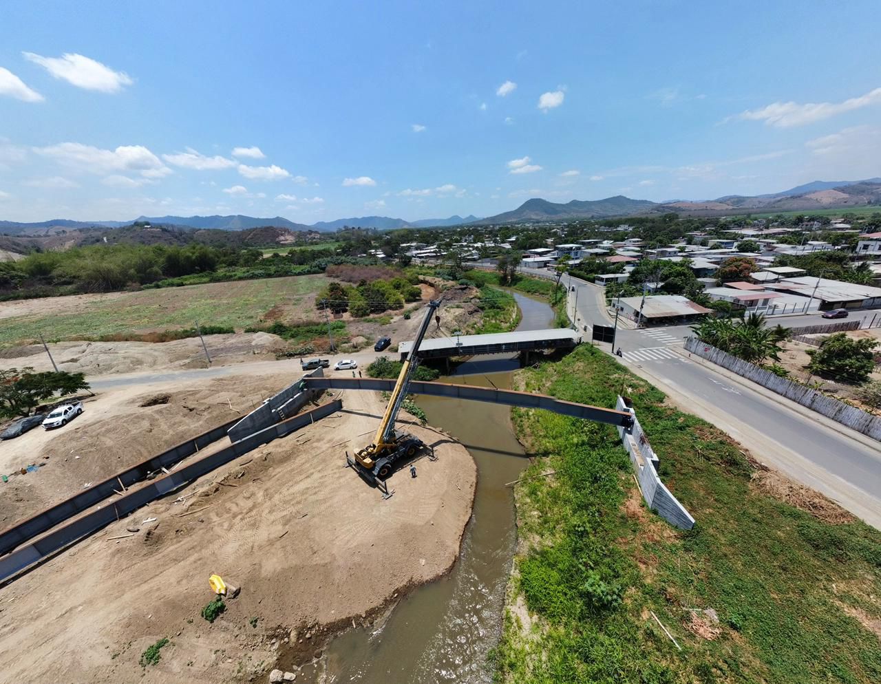 Buenas noticias para Manabí. El 1 de octubre comenzó una etapa clave en la construcción del nuevo puente sobre el río Portoviejo, en el sector El Cady de la parroquia Colón, con el montaje de sus tres vigas metálicas principales.